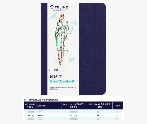 全球第19位!石藥集團(tuán)全球醫(yī)藥企業(yè)研發(fā)管線規(guī)模排名上升!