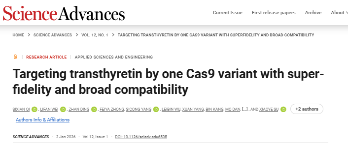 近日,由石藥集團李春雷博士、蘇曉曄博士,以及復(fù)旦大學(xué)甘建華教授作為共同通訊作者,祁思嫻博士作為第一作者合作完成的一項關(guān)于基因編輯治療轉(zhuǎn)甲狀腺素蛋白淀粉樣變(ATTR)的研究成果,以研究論文形式發(fā)表在國際著名權(quán)威期刊?Science Advances?。該研究系統(tǒng)性探究了高保真SpCas9突變體在ATTR治療中的應(yīng)用,為推動相關(guān)療法的臨床轉(zhuǎn)化提供了重要依據(jù)。