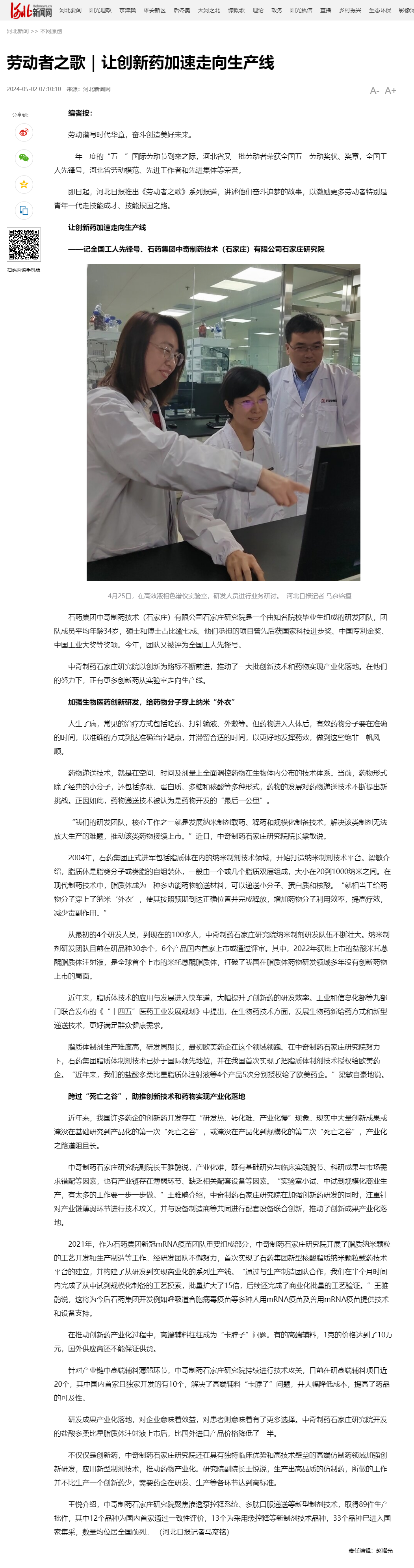 勞動者之歌|讓創新藥加速走向生產線——記全國工人先鋒號、石藥集團中奇制藥技術(石家莊)有限公司石家莊研究院